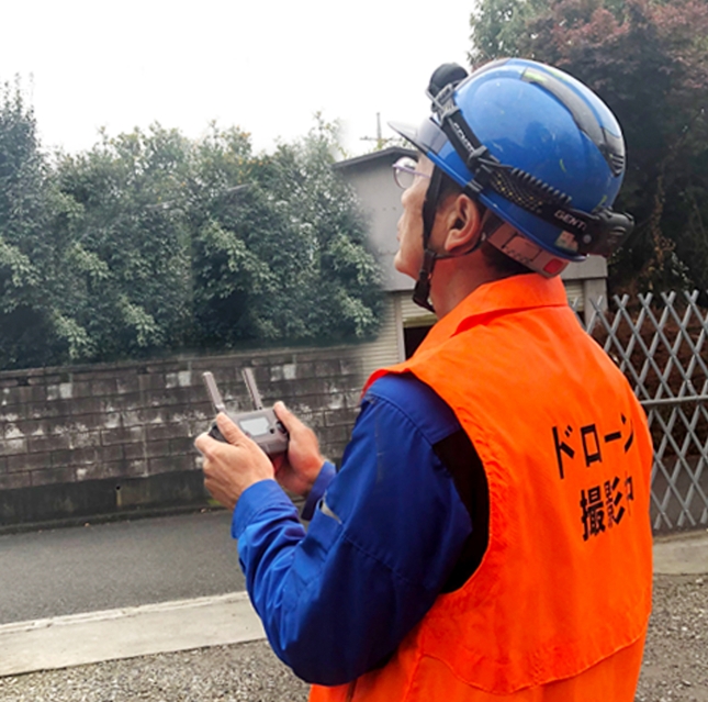 建物調査・診断とは? 適正な費用で適正な工事をするために、お見積もりの作成がとても重要ですが、その基盤となるのが建物調査になります。実際にご自宅に訪問して、外壁の面積など工事をする範囲を測ったり、外壁の劣化具合を調べます。普段見ないような部分までしっかりと調べて、どの部分がどうなっているのか、どういった工事が必要なのかを明確にすることができます。また、ドローンを用いて上空調査から家屋の老朽化調査や床下調査まで引き受けております。
